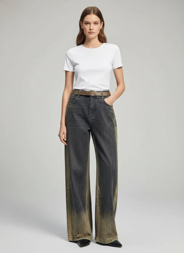 جین ضخامت متوسط با ایستایی ریزشی، دارای افکت سایهروشن و حس وینتیج لوکس