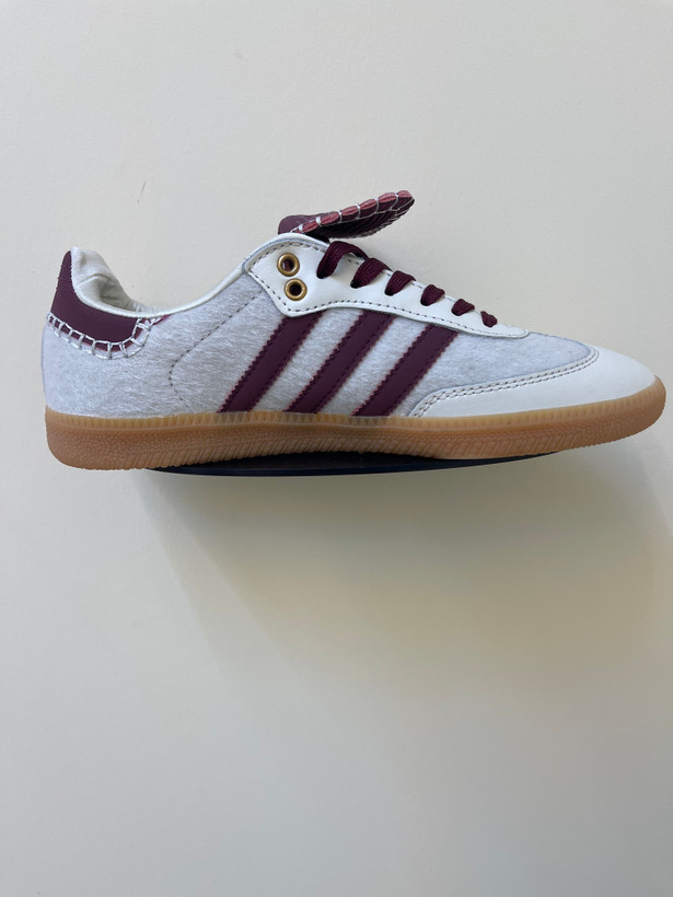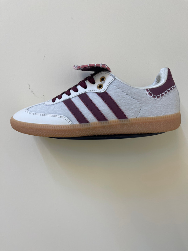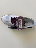 White / Burgundy / Honey Sole Premium Sneakersکفش اسپرت با ترکیب رنگ سفید و زرشکی، همراه با زیره عسلی روشن، طراحیشده برای استایلهای روزمره و نیمهاسپرت. دوخت تمیز، جزئیات فلزی طلایی و تضاد رنگ زرشکی در بند و خطوط جانبی، ظاهری کلاسیک و در عین حال شیک، مطابق لحن برندهای لوکس ریتیل ایجاد کرده است.