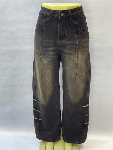 شلوار جین زنانه ذغالی زاپدار واید