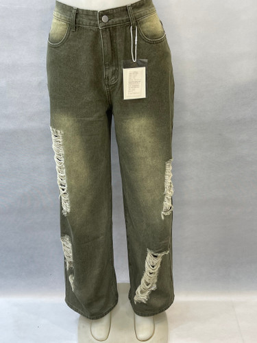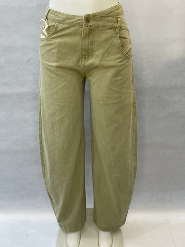 شلوار جین زنانه واید فید زیتونی