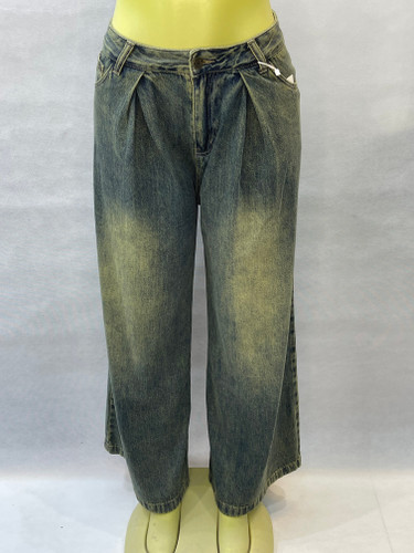 شلوار جین زنانه واید پیلیدار فید